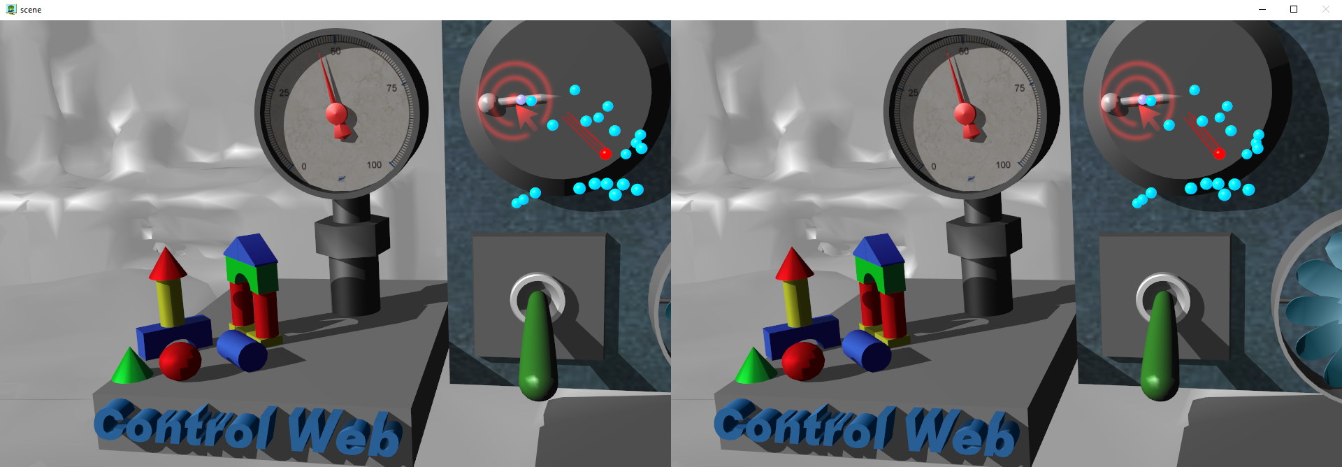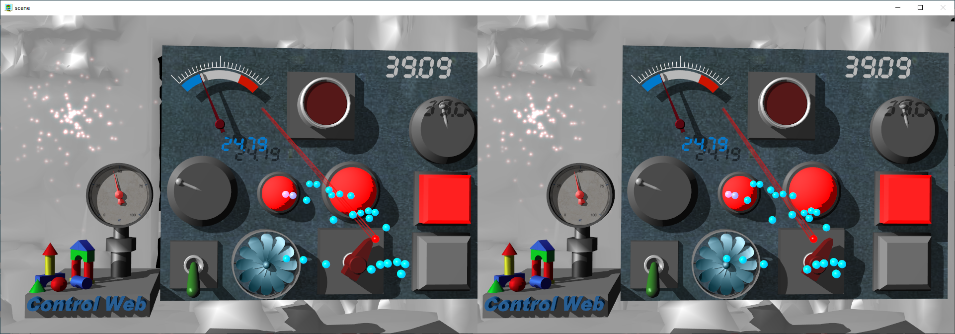 Virtuální přístroje v aplikaci můžeme v prostoru ovládat