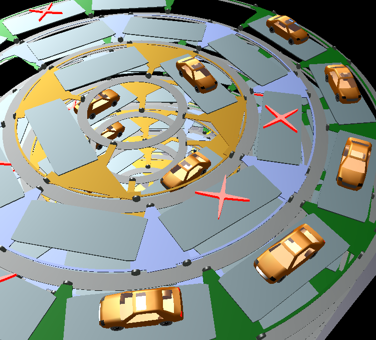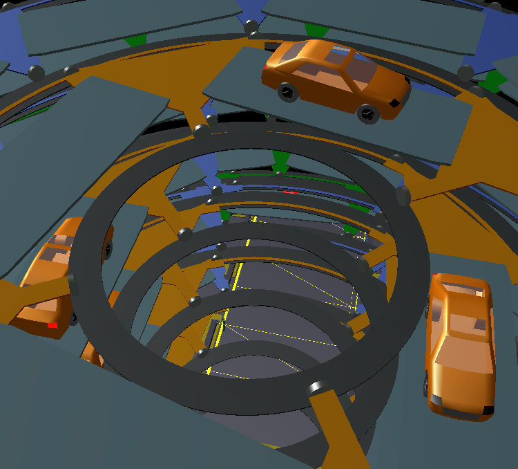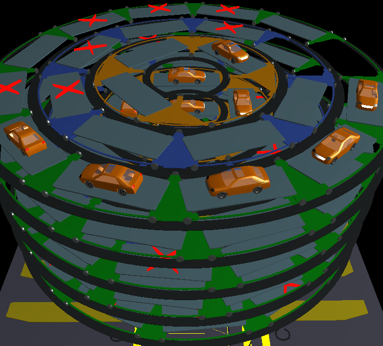 Řízenou technologií je zde automatický systém pro parkování a garážování osobních automobilů. Jedná se o ocelovou nosnou konstrukci, ve které se po jednotlivých kolejích pohybují parkovací plošiny s jednotlivými paletami. Zvedací zařízení přesouvají palety ve vertikálním směru a ukládají je na otočné parkovací plošiny. Veškeré manipulace s parkovacími paletami jsou řešeny čistě mechanicky, nejsou tedy zapotřebí žádné tlakové hydraulické či pneumatické rozvody. Zařízení pracuje velmi tiše, hladina hluku nepřekračuje 40dB. Také spotřeba energie je minimální, zvláště při srovnání energetické náročnosti parkování automobilů pomocí vlastních motorů. Při zaskladňování a opětovném vyskladňování automobilů nejsou produkovány žádné emise. V centrech měst má velký význam úspora prostoru pro parkování, na ploše o průměru 26 metrů je při šesti podlažích možno zaparkovat až 126 automobilů.