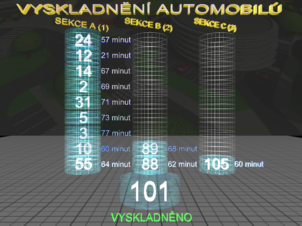 Třírozměrná vizualizace parkovacího domu přináší operátorovi dokonalý přehled.