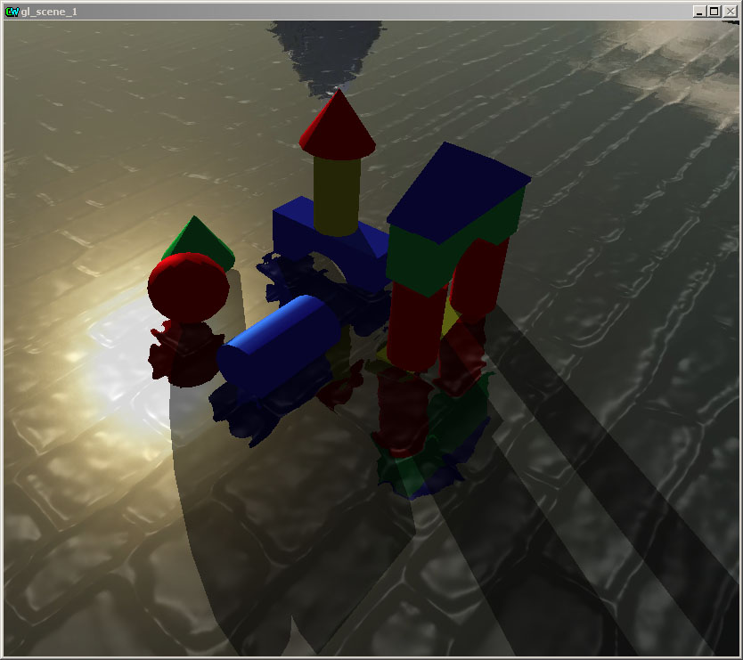 Vodní hladina s odrazem i lomem světla a animací