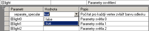 Separátní řešení odleskové složky povrchů se nastavuje