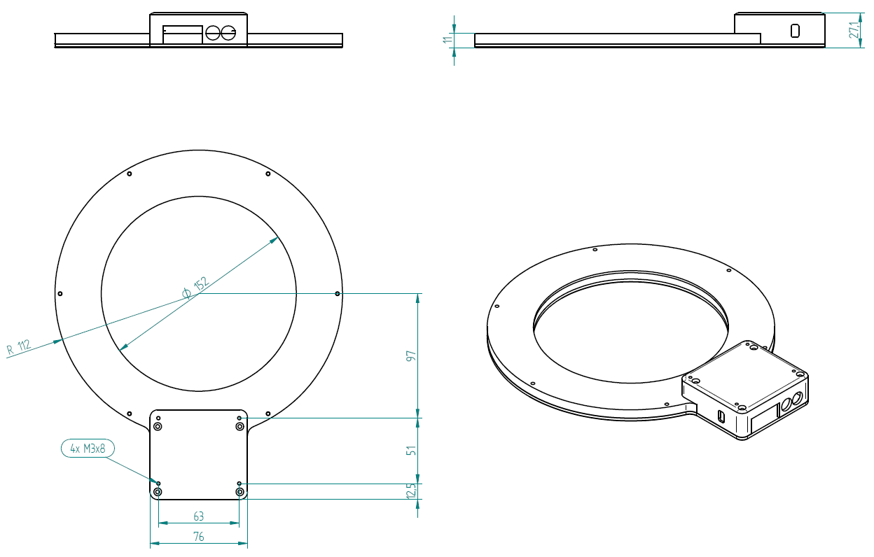 Rozměrový a montážní výkres osvětlovací jednotky DataLight