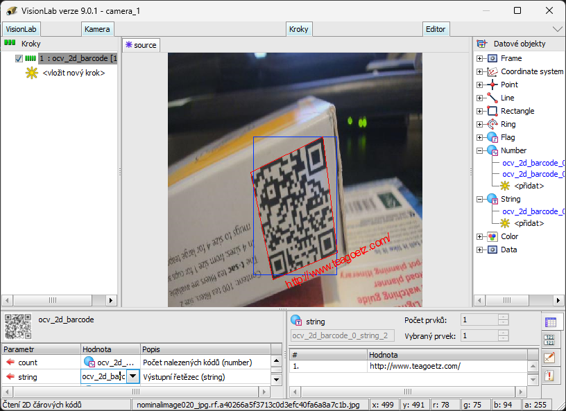 Příklad QR kódu nalezeného v obraze umělou