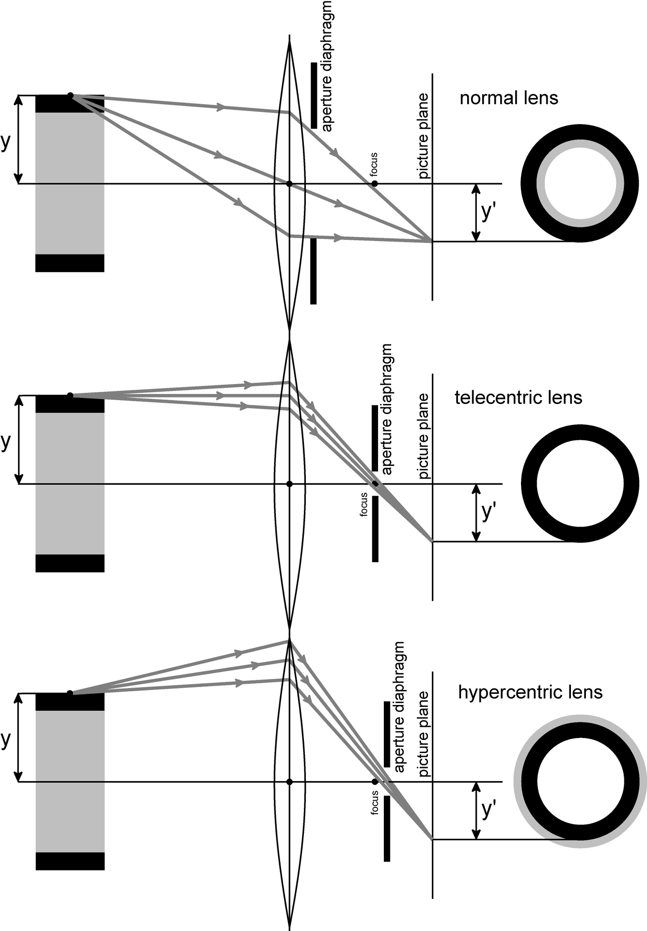 telecentric lenses is quite simple. With aperture diaphragm located in