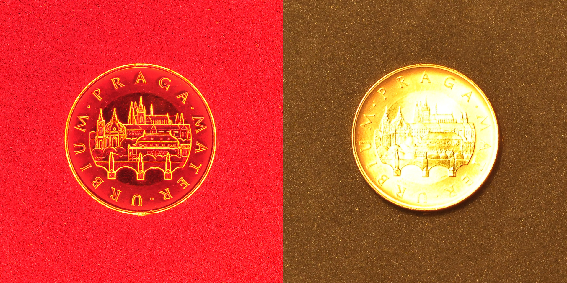 The coin illuminated by the DataLight DF15 illuminator with red light and an attempt to illuminate this coin with a common flat illuminator