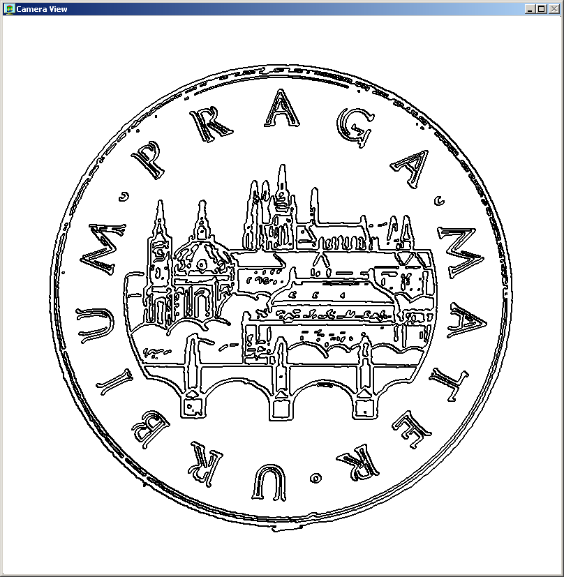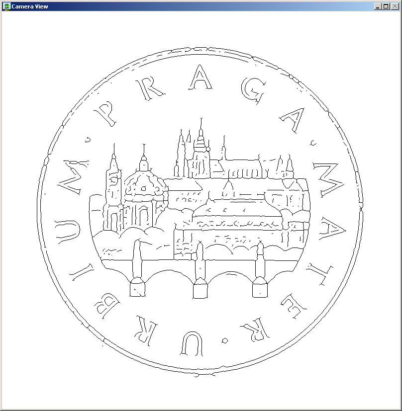 The visualization of the mintage on a coin's surface after edge detection