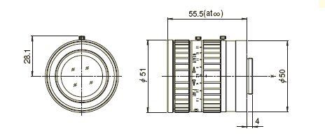 Objektiv Fujinon CF50HA-1 - schematický nákres