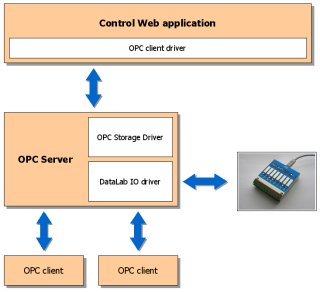 The basic principle is quite simple. The Control Web application connects to the OPC server using the OPC client (driver). The OPC server stores the data written by Control Web and allows other clients to read them. Similarly, Control Web application can read data stored on OPC server, written by other clients. The OPC server should have the capability to store data items—the OPC server for Control Web drivers can provide this feature by very simple OPC Storage Driver, which is supplied with the server.