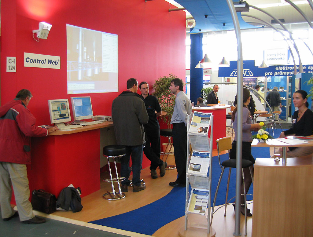 předvádět zájemcům systém, který ani při výstavním celodenním