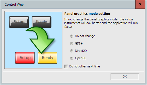 • When inserting virtual instruments from the palette into the panel, an assistance dialog is available to set the type of the panel's graphic renderer. Choosing the right renderer can improve the appearance of your application, while also significantly increasing graphics rendering speed.