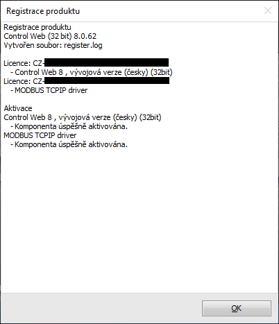 Control Web Runtime Anglický nastaví licenční číslo oběma