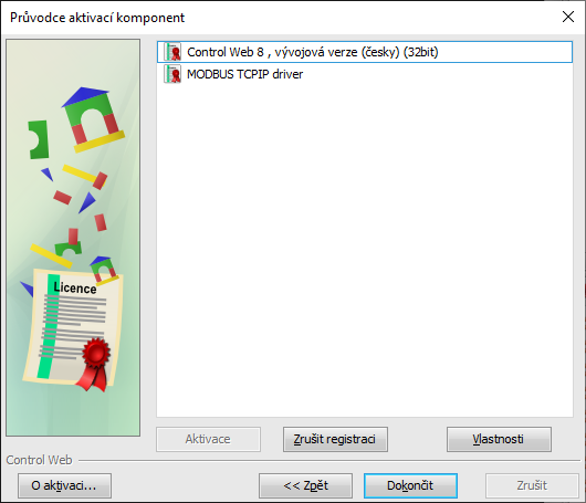 Výsledek je možné zkontrolovat v průvodci aktivací komponent: