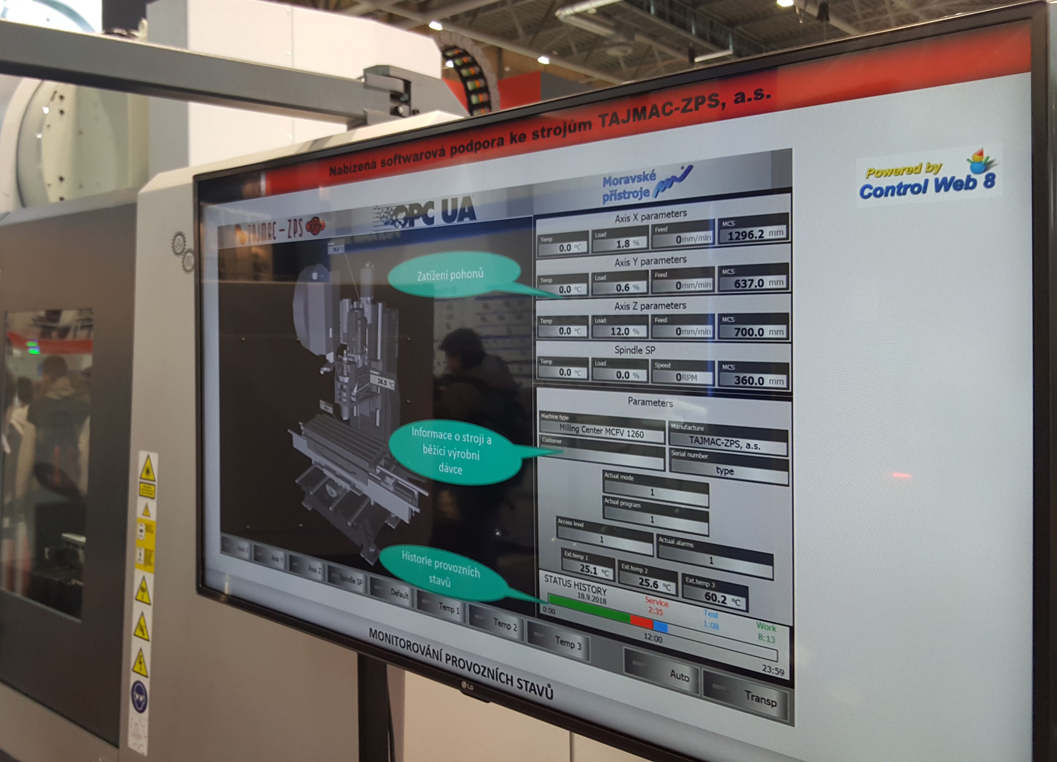možnosti správy strojů je monitorování stavu stroje a efektivity jeho