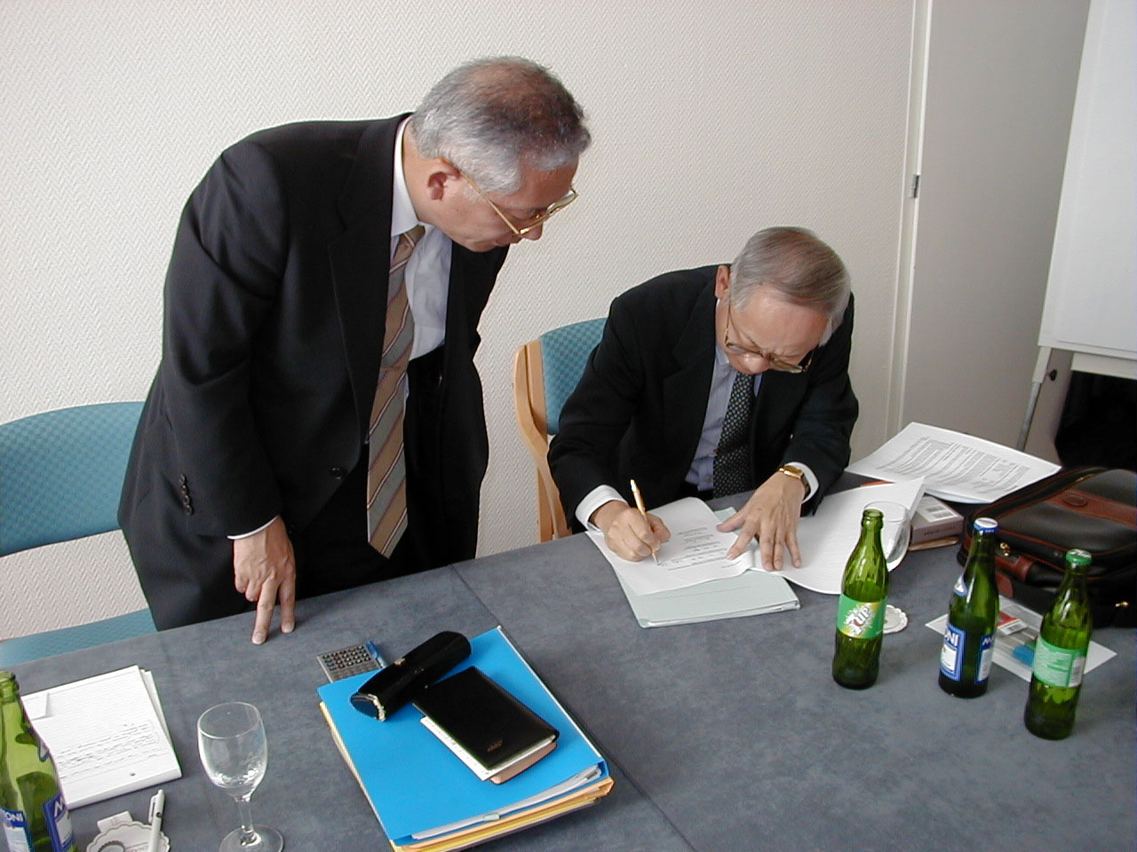 je podepsáno, podání rukou s panem Takeo