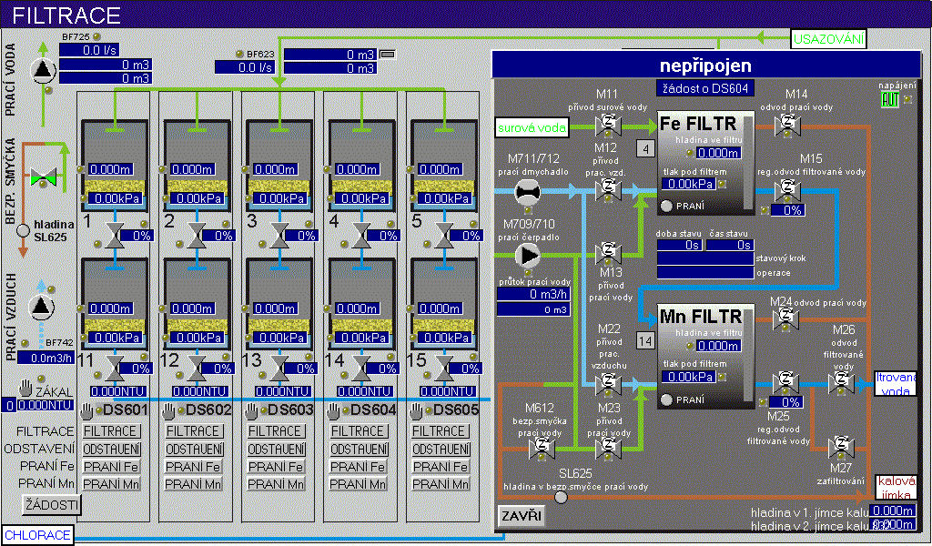 Vizualizace a řízení technologie v úpravně vody Úpravna vody.