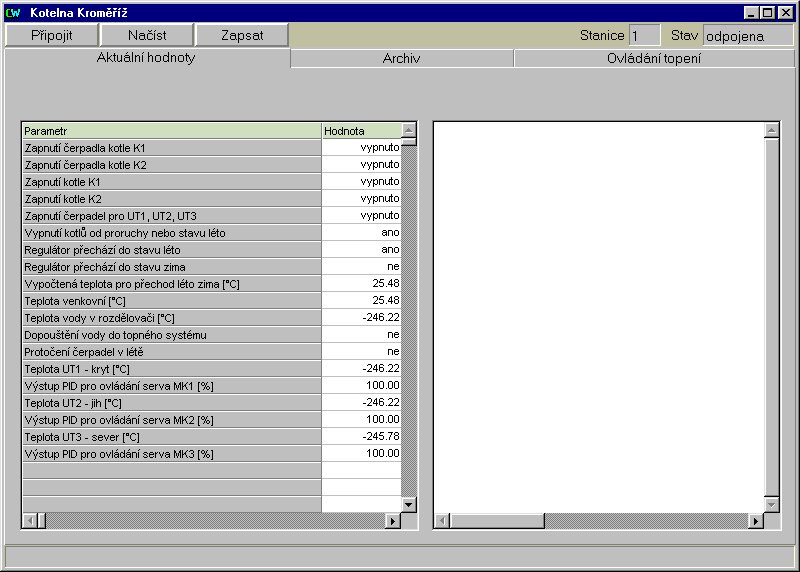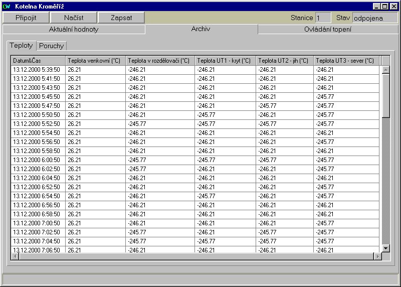 | Hardware | | | Software | | | Funkce | Program slouží k získání aktuálních údajů o kotelně