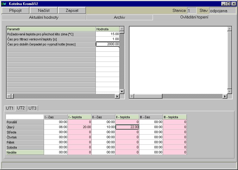 časový regulační plán, v případě potřeby lze z řídicího automatu