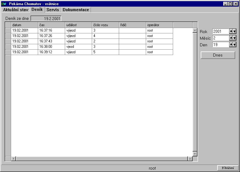 eviduje příjezdy a odjezdy vozů. Program je navržen pro