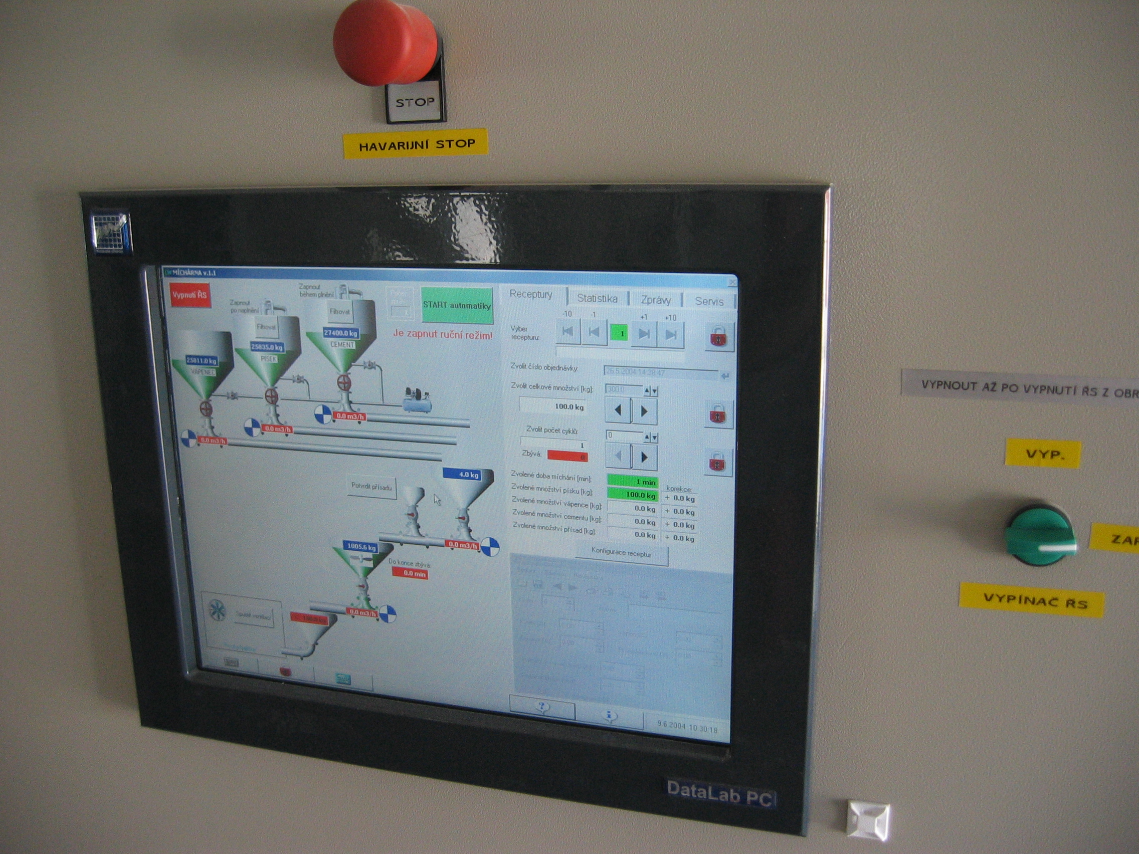 Řídicí systém pro míchárnu suchých cementových směsí pro firmu