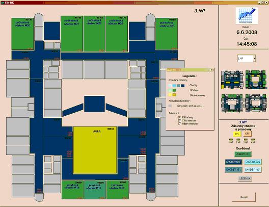 Řízení osvětlení přes sběrnici EIB (KNX)v budově FIM Univerzity Hradec Králové.  | | Řídicí systém osvětlení přes dispečerské pracoviště.