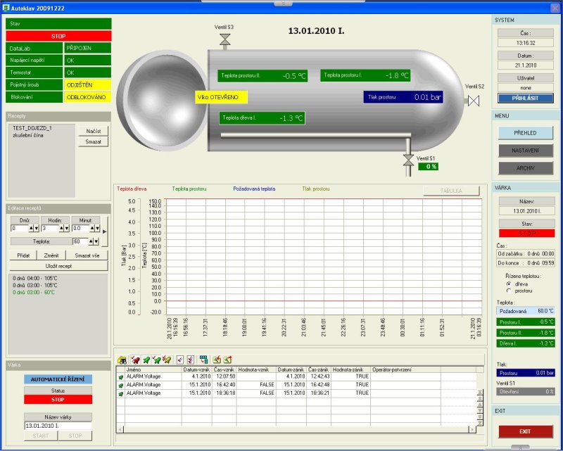 Řídicí systém pro autokláv velkých rozměrů. Jedna várka až