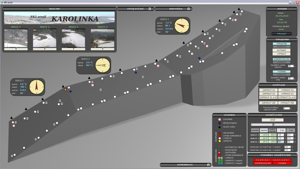 ovládání osvětlení a zasněžovaní podél sjezdovky. V aplikaci