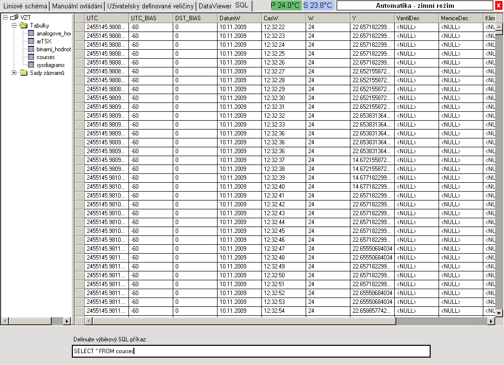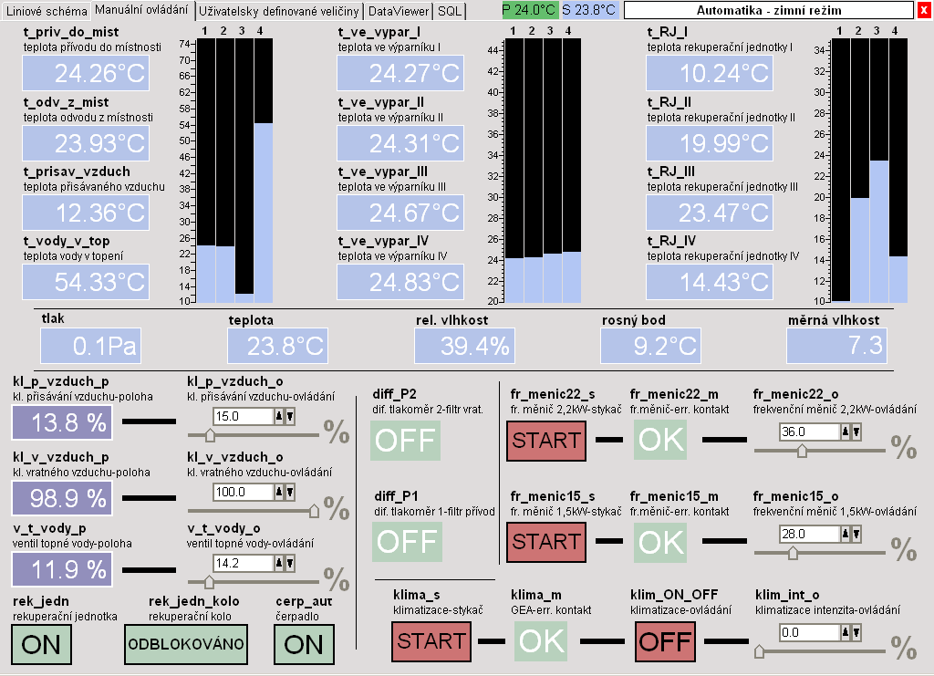 databáze.Systém řízení běží na DataLabu s operačním