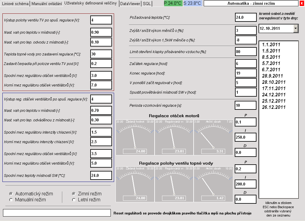regulátorů v zimním režimu lze docílit toho, aby byl