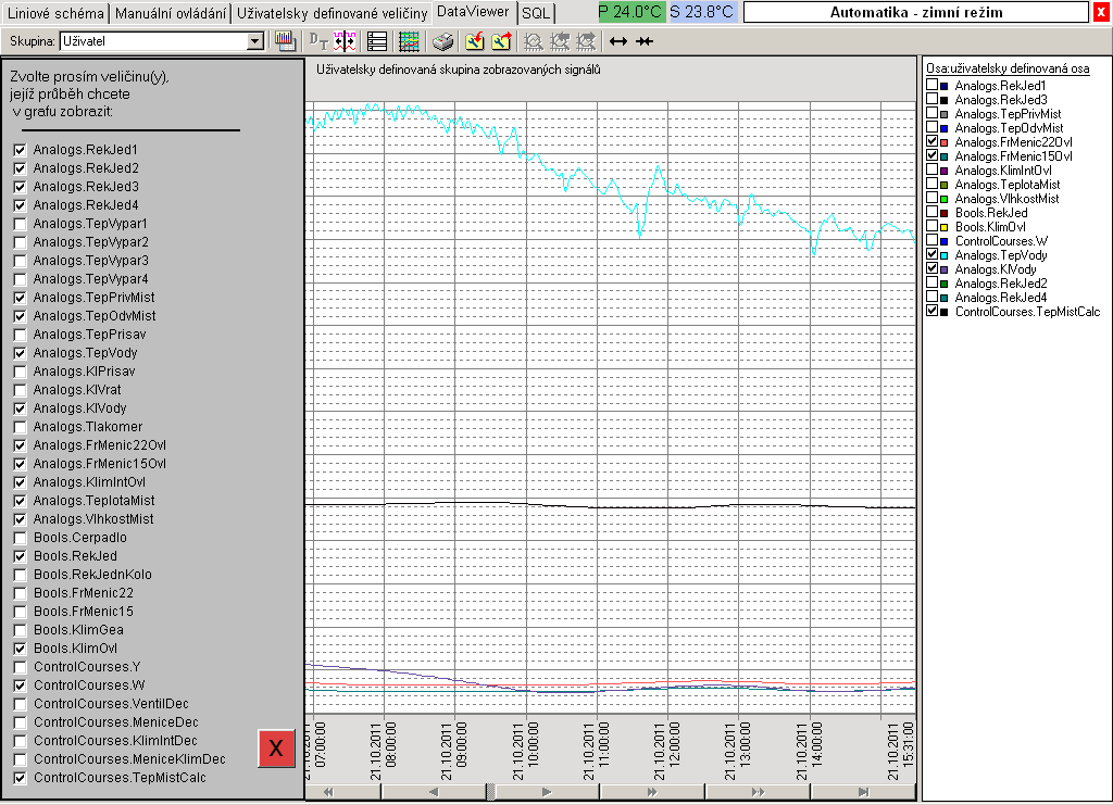 letní/zimní provoz a přepínání mezi automatikou a