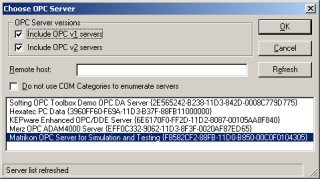 - Choosing the OPC server