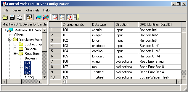 channel_number=identifier of the OPC server data item