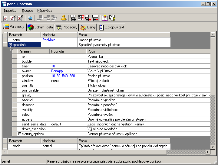 Virtual instrument's properties, colors, procedures etc. can be