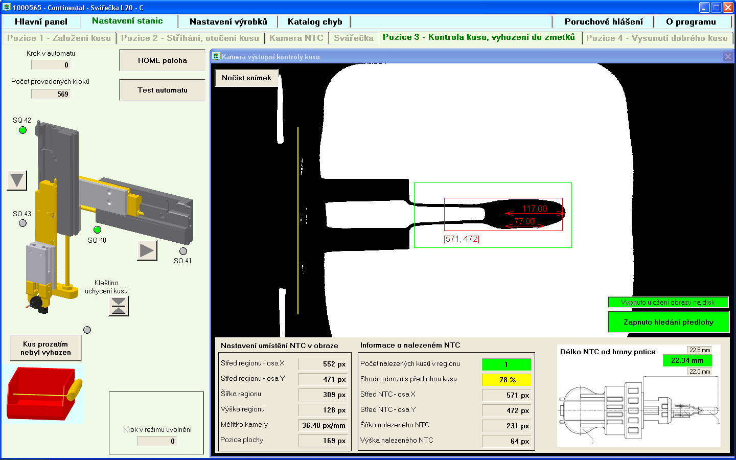 S pomocí systému strojového vidění jsou komponenty teplotních snímačů vyráběny s vysokou přesností a stabilitou veškerých parametrů. Dodavatel automatu a řešitel strojového vidění: VPRO Šumperk, s. r. o. Žerotínova 83 787 01 Šumperk http://www.vpro.cz Tel: +420 583224128, +420 583219078 Uživatel systému: výrobce komponent pro automobilový průmysl |